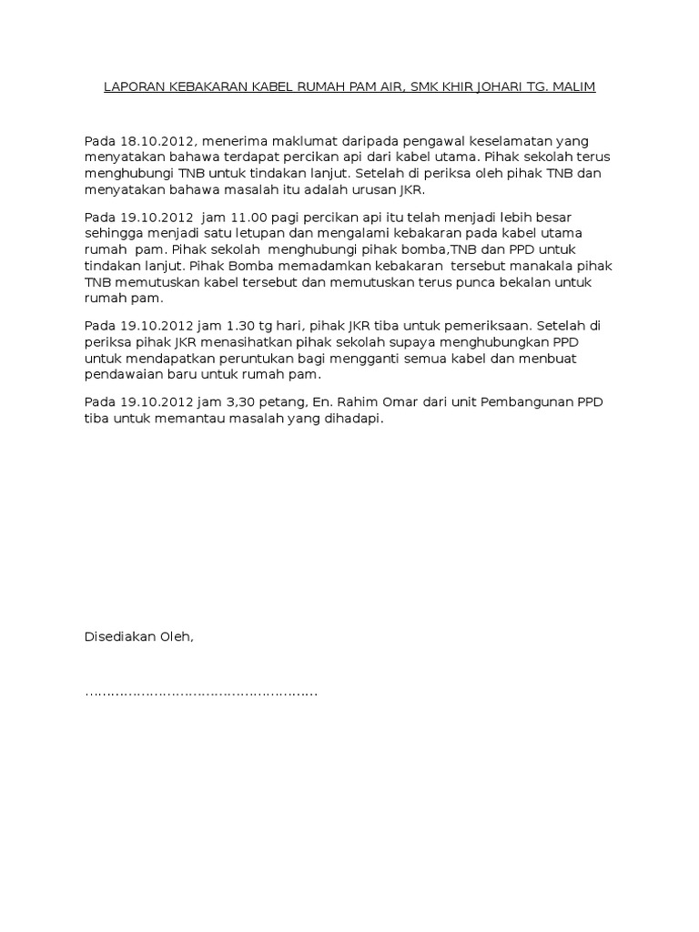 Laporan Kebakaran Kabel Rumah Pam Air Pdf