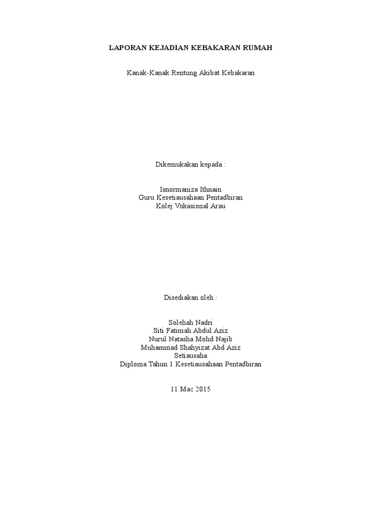 Sebuah kebakaran telah terjadi terjadi di komplek perumahan Taman Medan kemarin malam jam 2114 WIB. Contoh format surat laporan kejadian kebakaran dari kecamatan. Kawasan sekolah taman pjk masa kes kejadian.