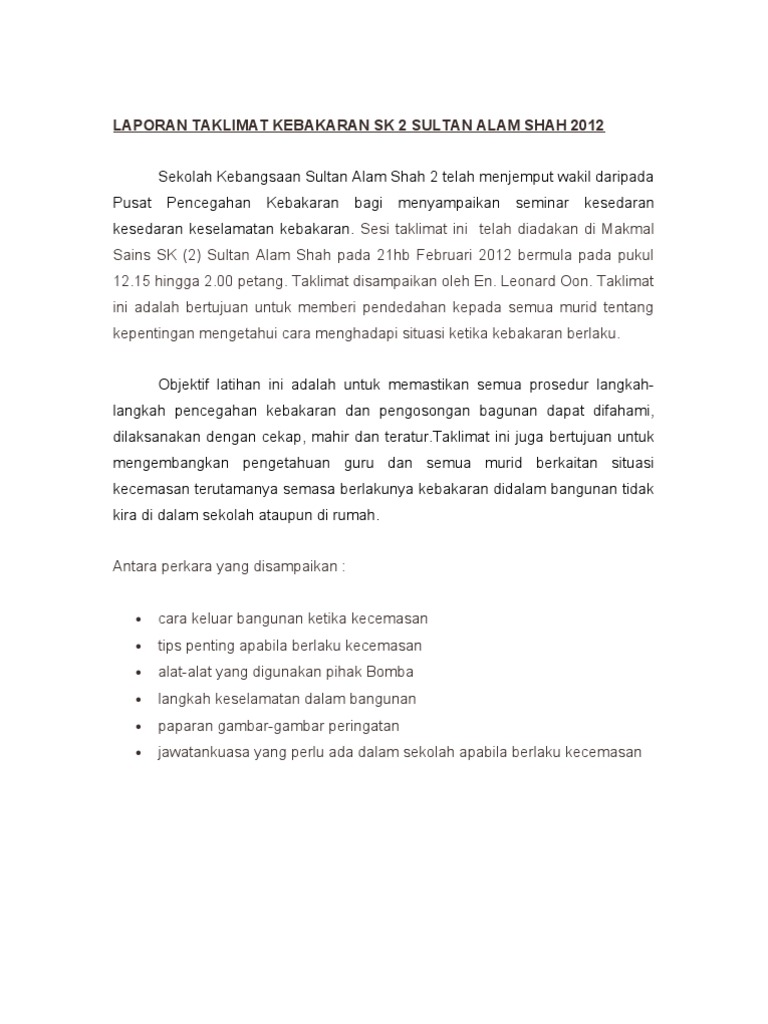 Laporan Latihan Kebakaran Bomba Pdf